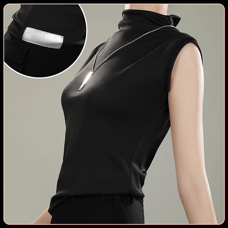 ニットで製作しています。ハイネックが大人の品格を演出し、ノースリーブカットで柔らかい肩線を際立たせるこのトップスです。体のラインにピッタリと馴染み、窮屈さを感じさせない快適さです。