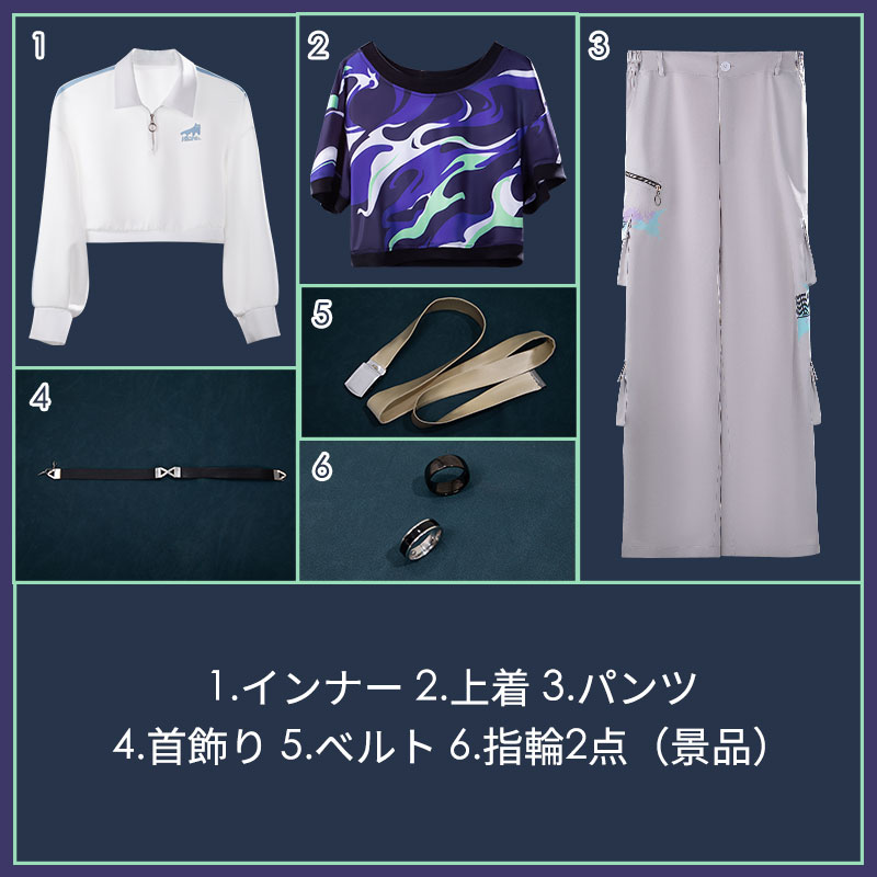 インナー、上着、パンツ、飾り物(首飾り、ベルト、指輪2点(景品))