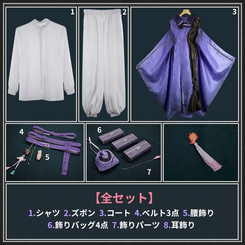 コート、シャツ、ズボン、飾り物(ベルト3点、腰飾り、飾りバッグ4点、飾りパーツ、耳飾り)