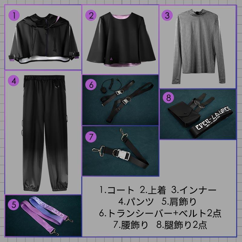 コート、上着、インナー、パンツ、飾り物(腰飾り、肩飾り、ベルト2点、腿飾り2点、トランシーバー)