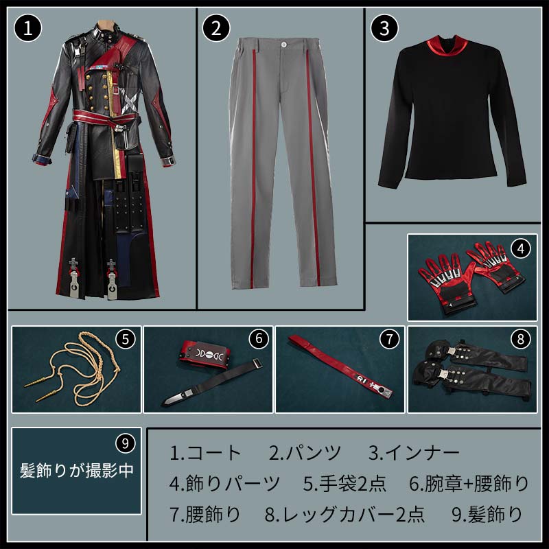 コート、インナー、パンツ、飾り物(手袋2点、飾りパーツ、腕章、腰飾り2点、レッグカバー2点、髪飾り)
