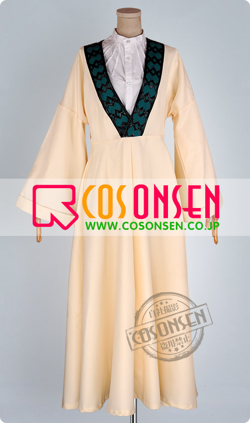 薄黄色を基調したポリ混紡生地で製作いたしました。裾には原作と同じような紋様が付きます。