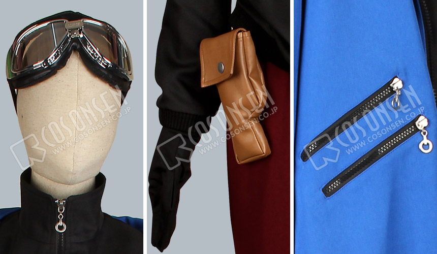 黒を基調したシャツ専用生地で製作いたしました。原作のデザインを重視して前身のファスナーで着脱して頂きます。