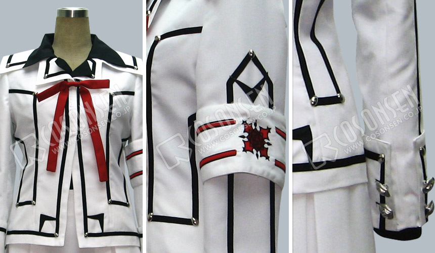 白を基調したポリ混紡生地で製作します。この衣装はヴァンパイア騎士