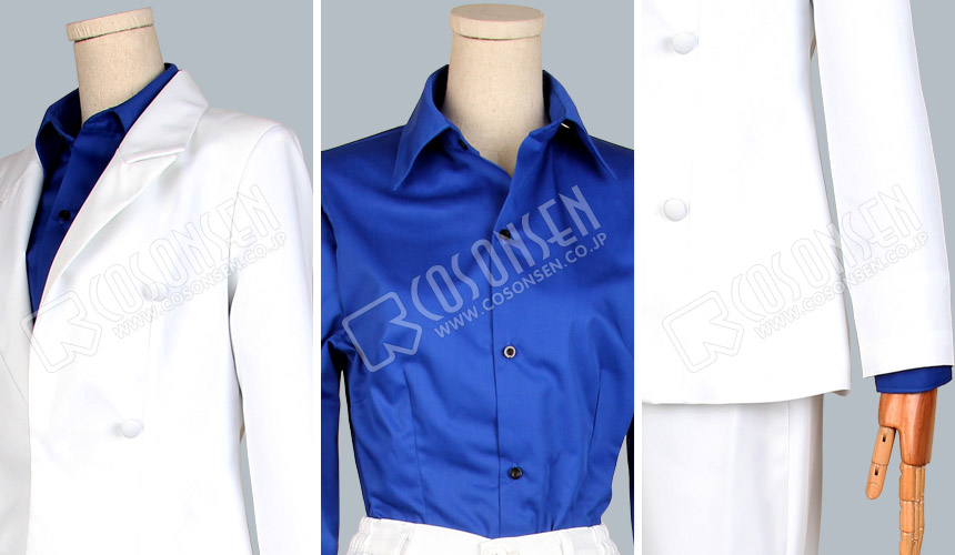 白を基調したボリ混紡生地で製作します、白いスーツは白馬王子のイメジーがあります。これを着て、お姫様を探しましょう~