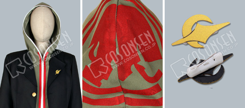黒を基調したポリ混紡生地で製作します。前身頃と袖口に金色のボタンを付きます。本格的な制服で、普段でも着れます。
