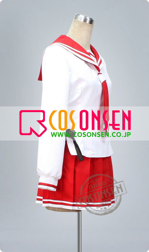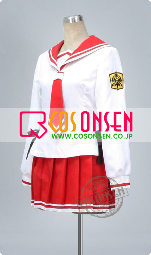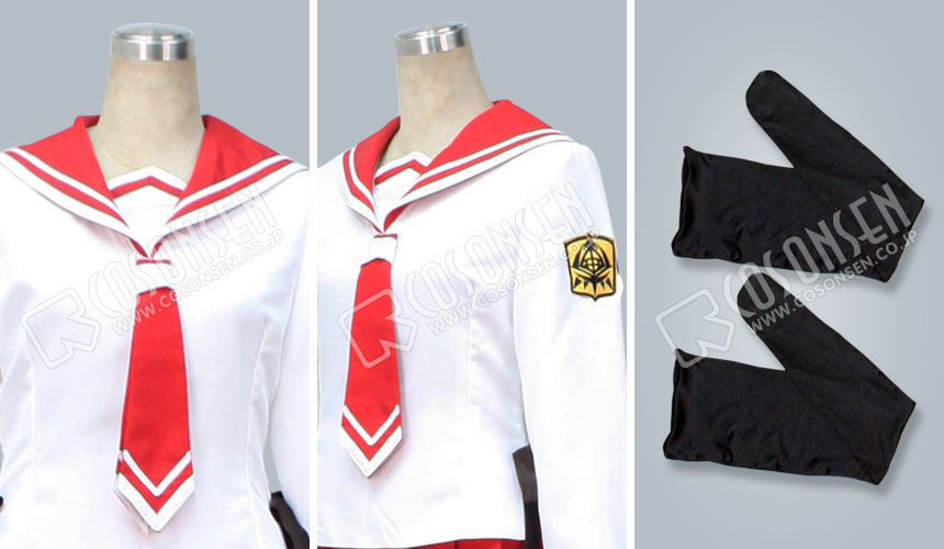 白を基調したぼり混紡生地で製作します。左アームに徽章を付きます。腰の両側に黒のリボンを付きます。細部も原作を再現しました。