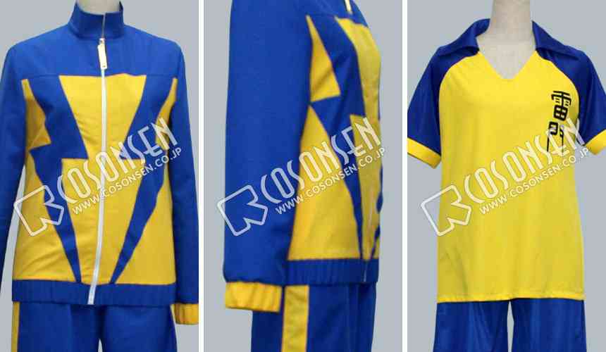 上着の前胸は特別な雷形の図案をプリントしています。