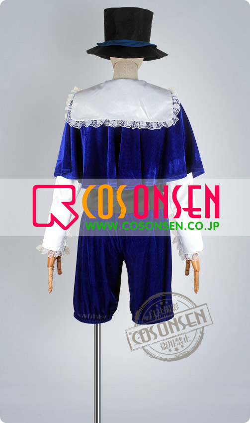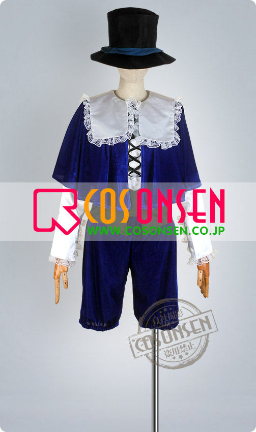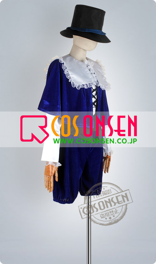 ダックブルーを基調したベルベット生地で製作します。半ズボンです。原作とそっくりです。