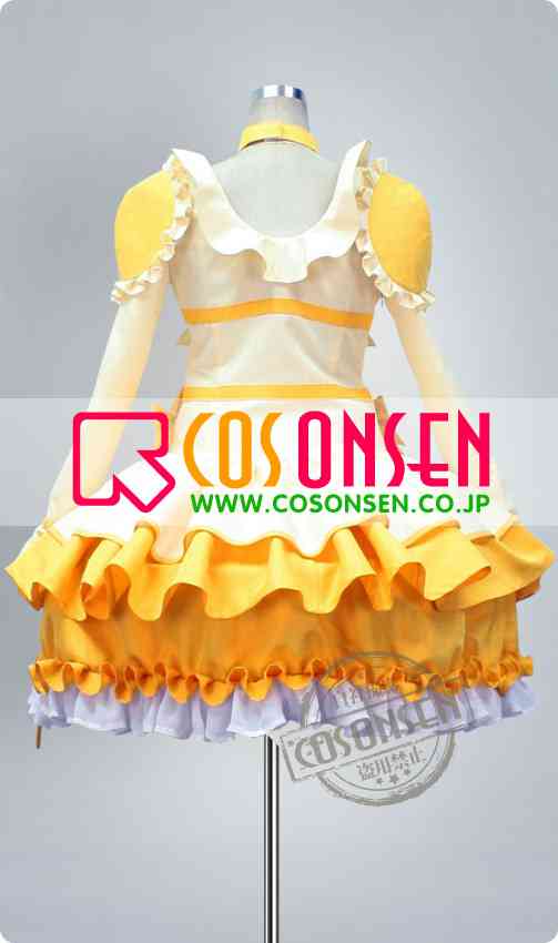 黄色と白を基調にした生地で、スカート部分は多重フリル構造です。