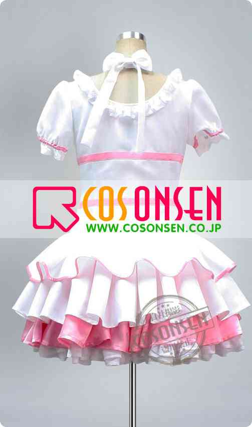 ピンクと白を基調にしてシワになりにくい生地で、スカート部分はリボン付きの三重プリーツ構造です。