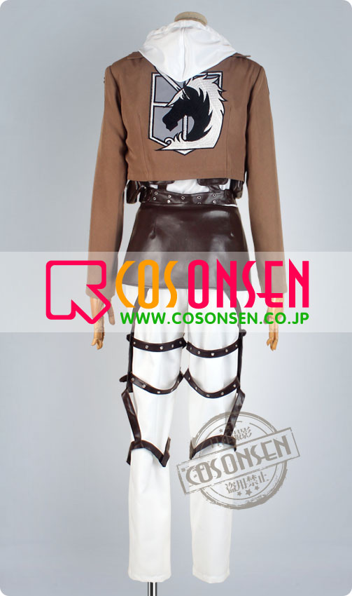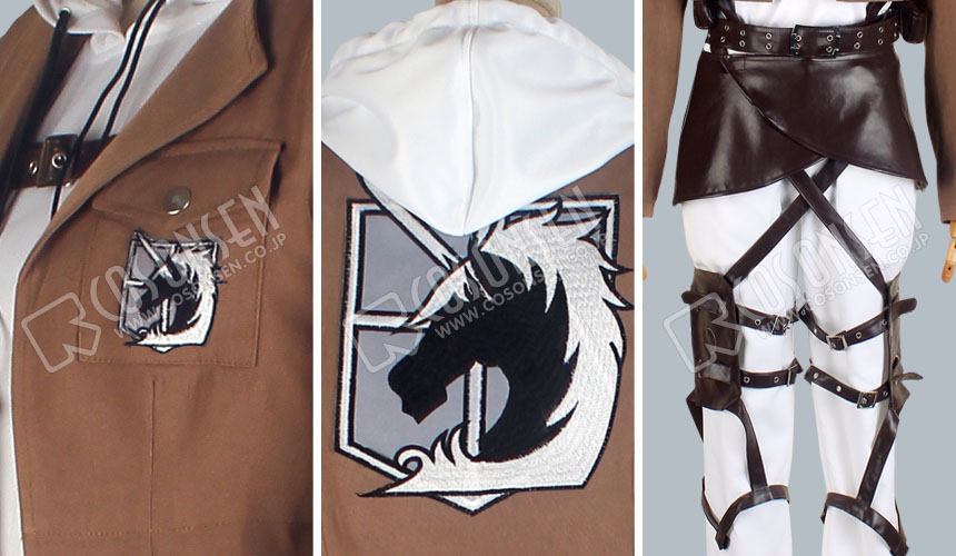 カーキ色を基調にした生地で、両腕と左胸と背中に憲兵団を象徴する馬の模様が刺繍されています。