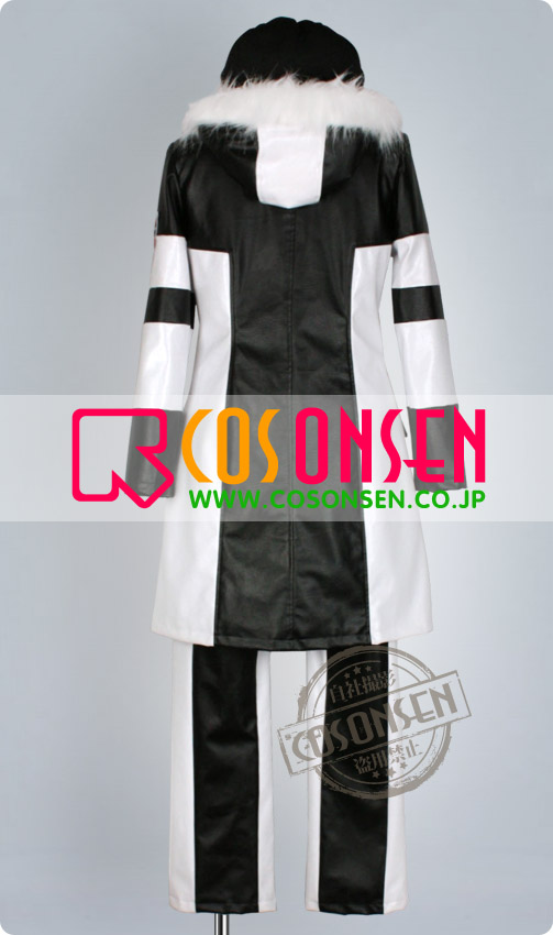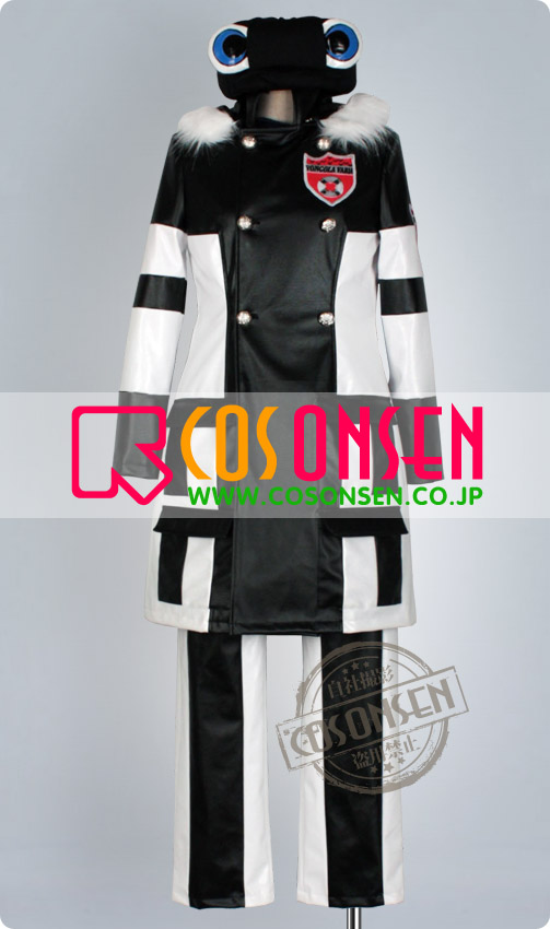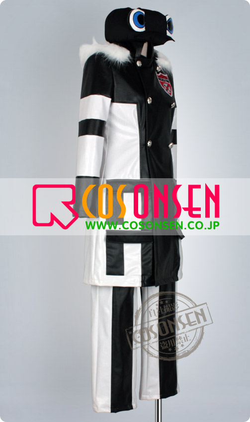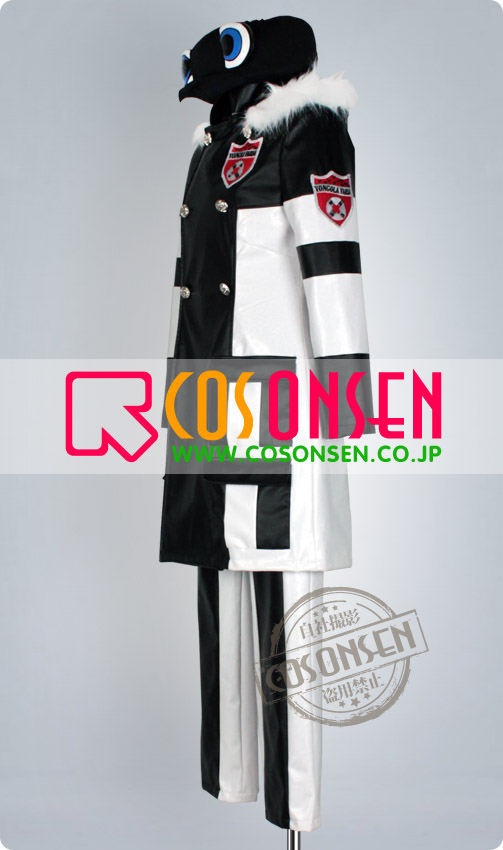 白と黒を基調したポリ混紡生地にで製作。右胸と右腕に勲章をプリントしています。帽子つきで、襟部分はベルベットにで製作。