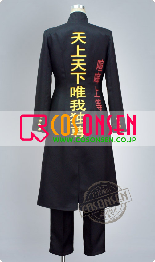 後ろ身み「天上天下唯我独尊」「喧嘩上等」の文字がプリントされます。