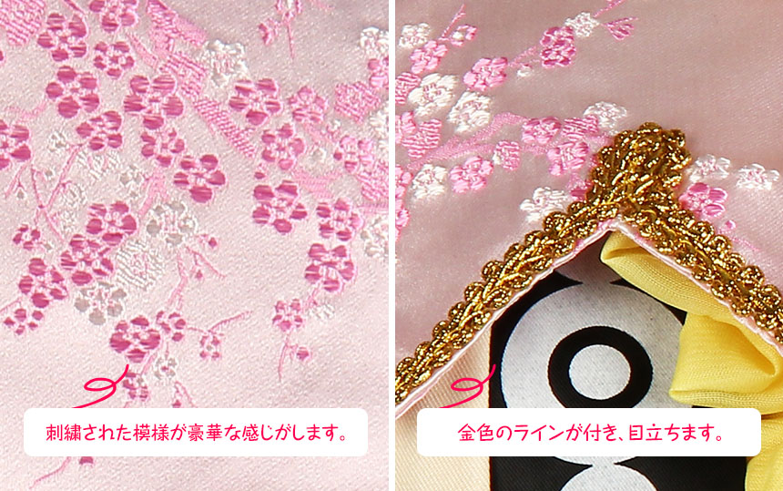 ピンクを基調したシルクで製作します。周りには金色のラインあり、キラキラしています。