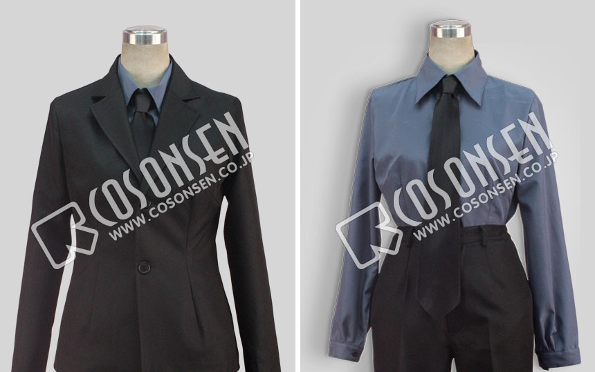 黒を基調したポリ混紡生地にて製作します。シルエットを強調した端麗な作りで、スマートな衛宮切嗣をイメージさせる