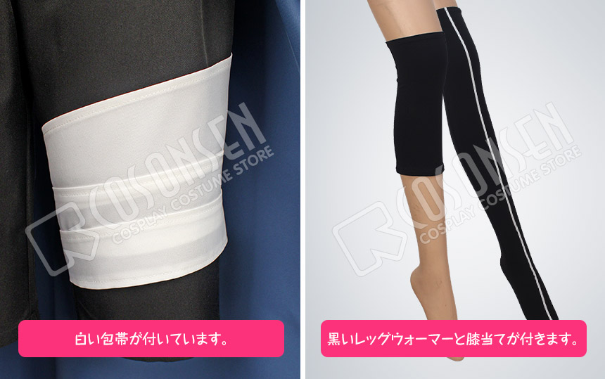 手袋、バッジ、ベスト、ベルト、アームカバー、紐、包帯、レッグウォーマー 、膝当ても付属しております。