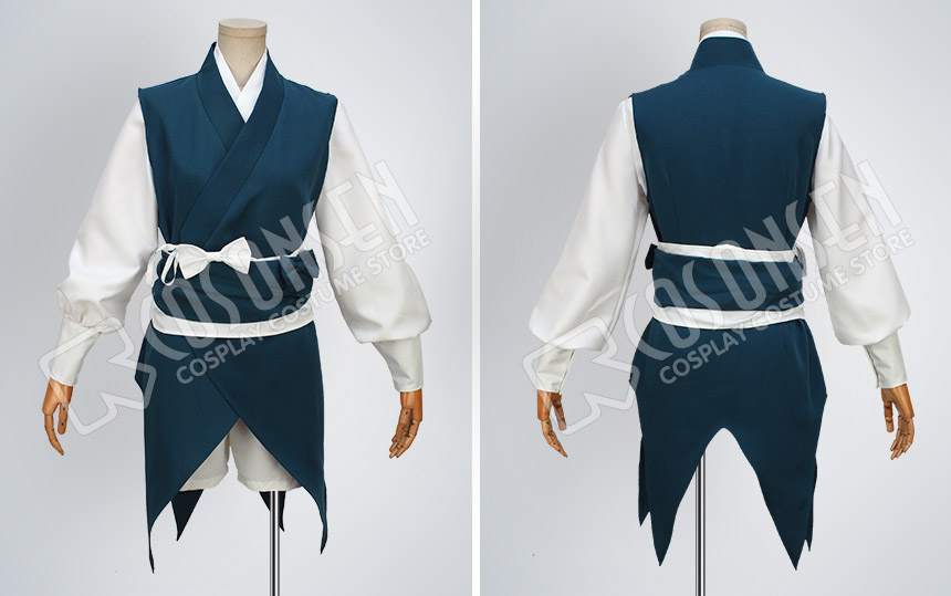 青を基調したポリ混紡生地にて製作します。デザインは原作に忠実して、絵柄も丁寧に捺染されます。肩の所にオレンジ色の飾り物が飾って、とても綺麗に見えます。