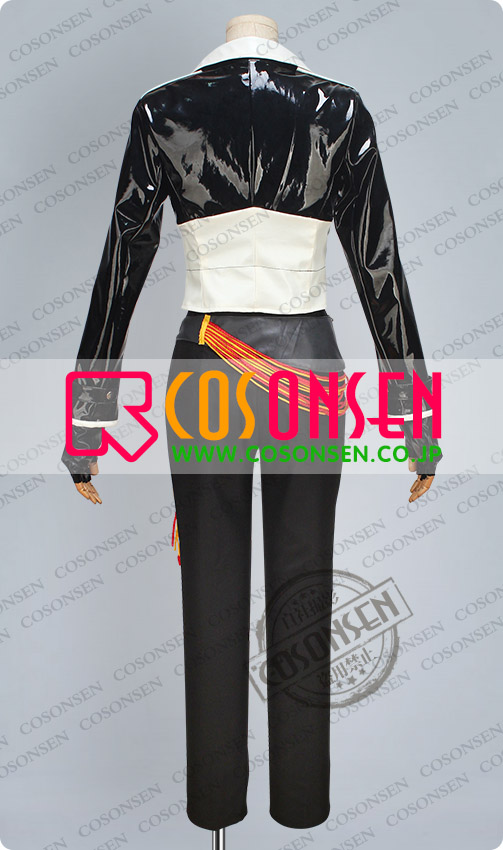 黒を基調したポリ混紡生地にて製作します。赤いラインが飾っております。原作に忠実しました。