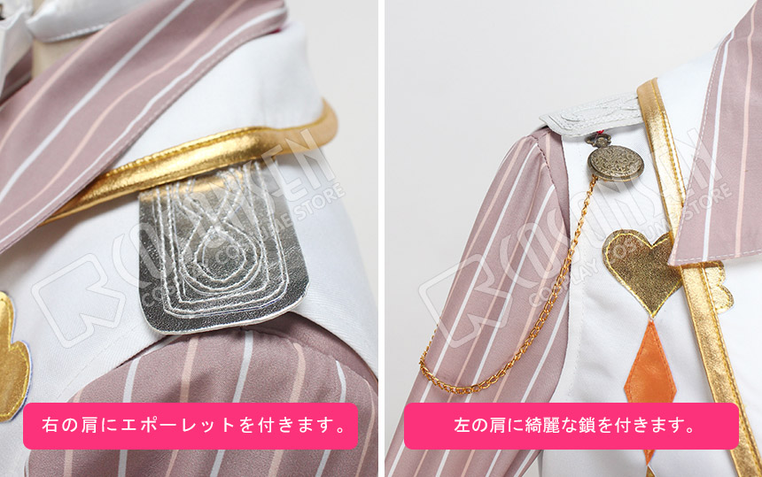白を基調したポリ混紡にて製作します。両側に金色のポリ混紡製品があり、原作も更に再現します。
