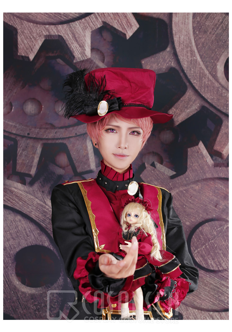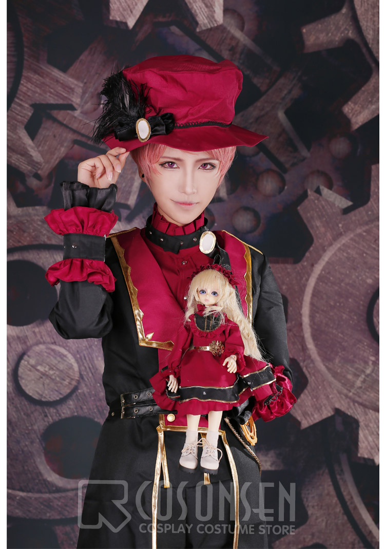 ジャケット、シャツ、ズボン、飾り物(リボンタイ、腕飾り、ベルトx2、ギヤ飾り、チェーン、帽子)