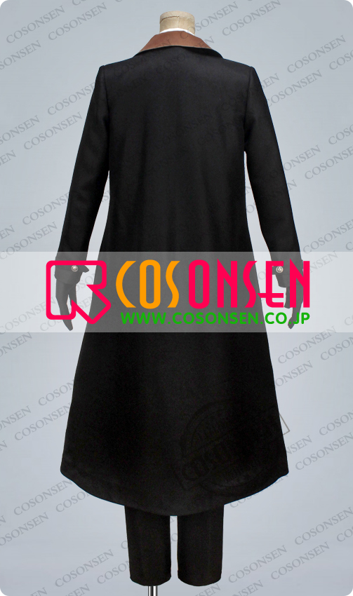 黒を基調したポリ混紡にて製作します。ショットコートの長さは胸に達します。袖口は丹色で、ロングコートの襟と同調しています。よく原作を再現しました。