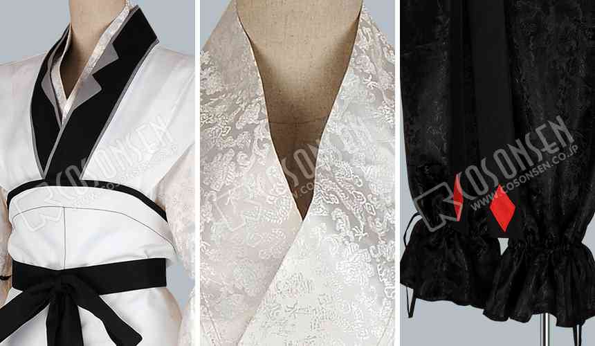 白を基調したポリ混紡生地で製作いたしました。原作を忠実に再現いたしました。美しいシルエットが魅力です。
