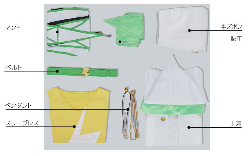 腰布、マント、ボールチェーン、ペンダント、ベルトも付属しています。