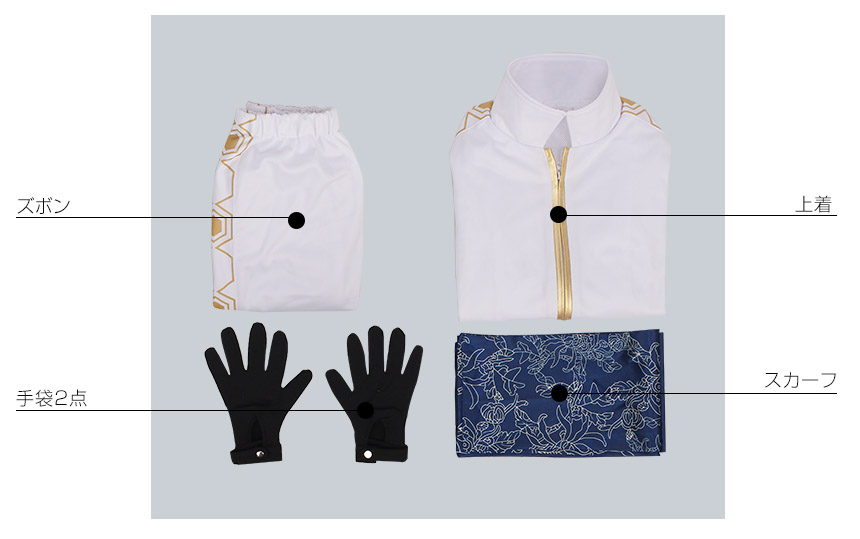 上着、ズボン、飾り物(スカーフ、手袋2点)
