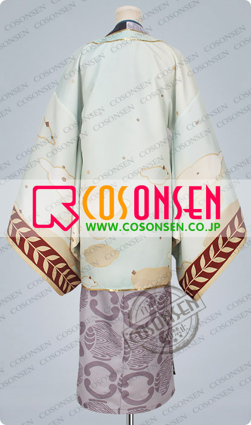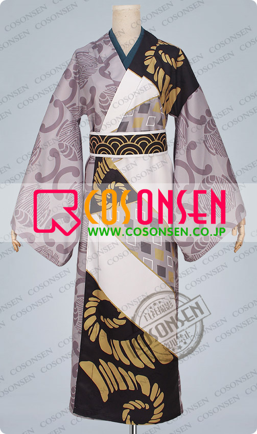 紫色を基調したポリ混紡にて製作します。正面に精妙な図案がプリントされています。よく原作のデザインに忠実にしています。青い掛け襟は縫い付けられます。上等な生地で製作して、細部の縫製もしっかりしています。