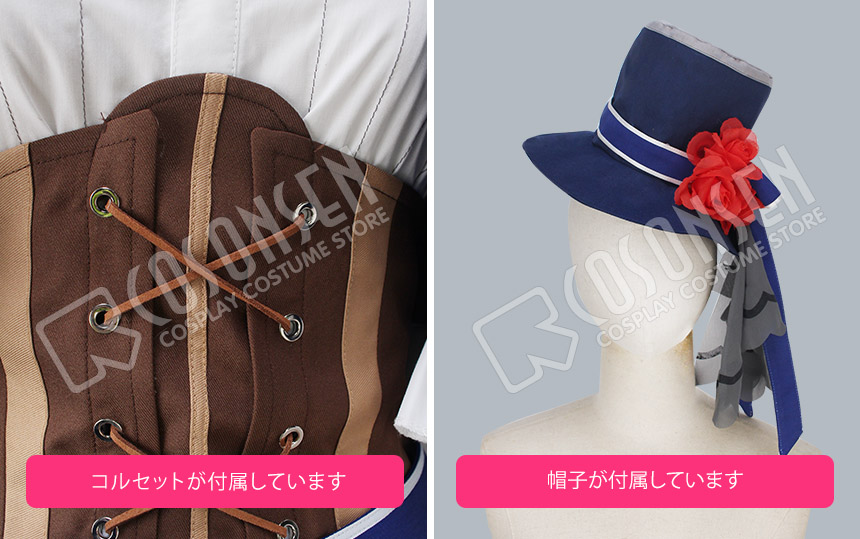 コルセット、腰飾り、チェーン、ベルト、リボン飾り、帽子も付属しています。
