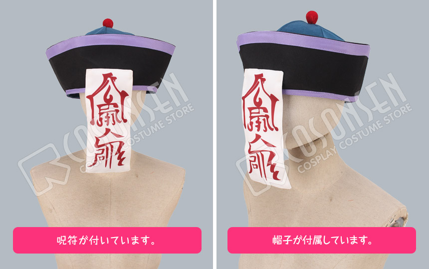 チャイナ服、ズボン、飾り物(帽子、呪符、マント、念珠、包帯2点、アームカバー2点)