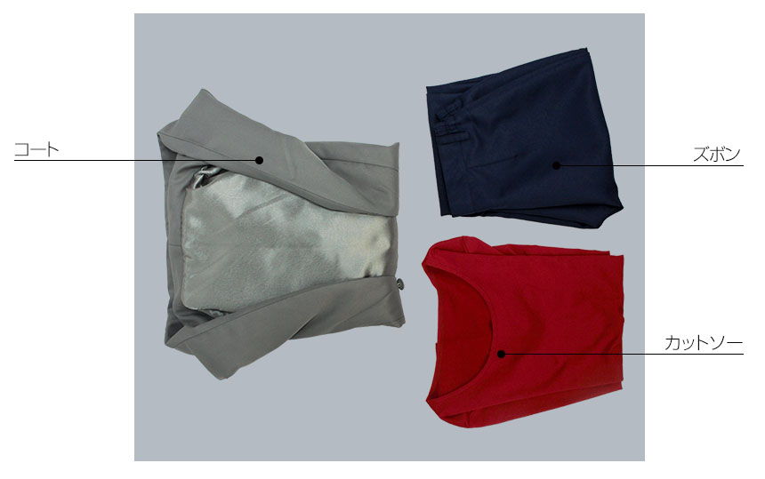 コート、カットソー、ズボン