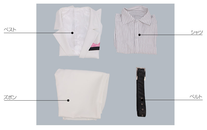 ベスト、シャツ、ズボン、飾り物(ベルト)