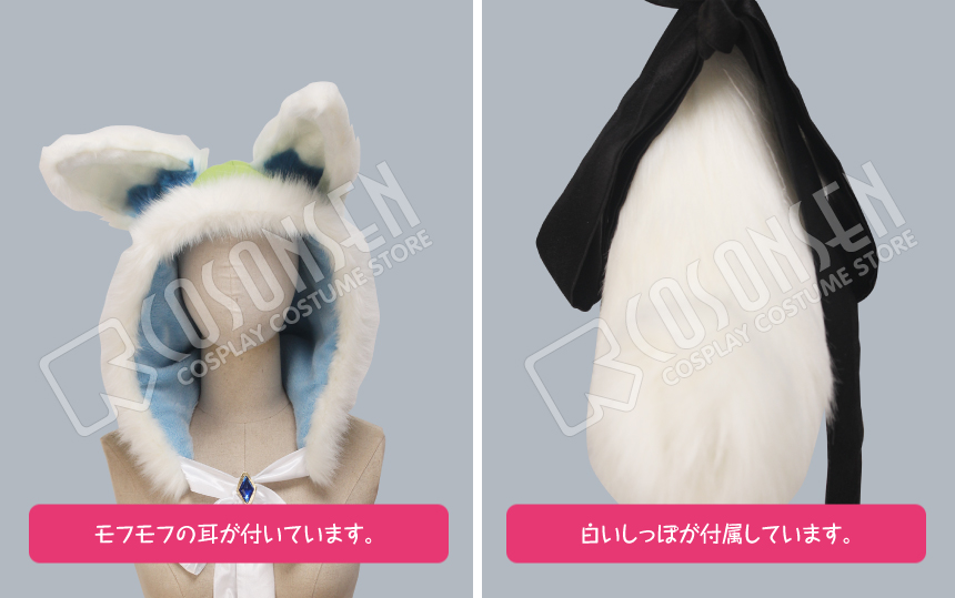 フード、バッジ、しっぽも付属しています。