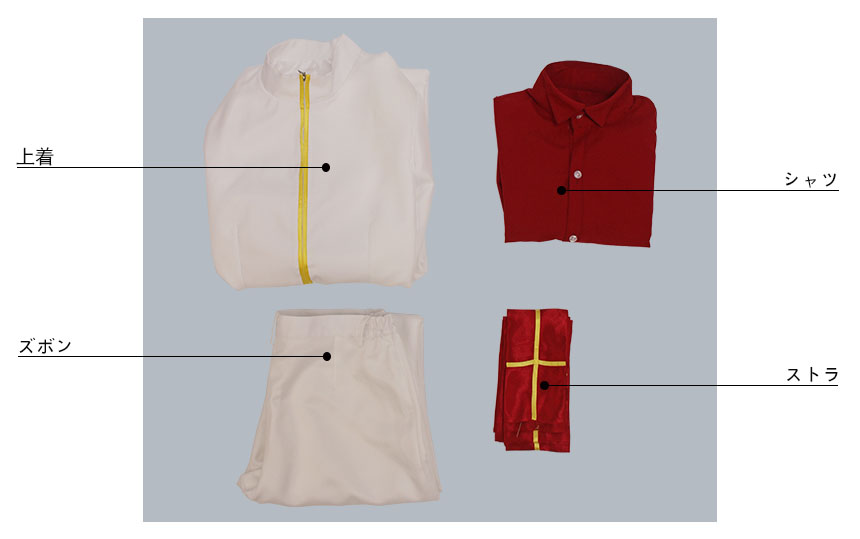 上着、シャツ、ズボン、飾り物(ストラ)