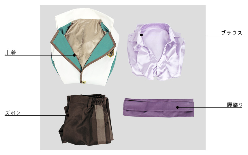上着、ブラウス、ズボン、飾り物(腰飾り)