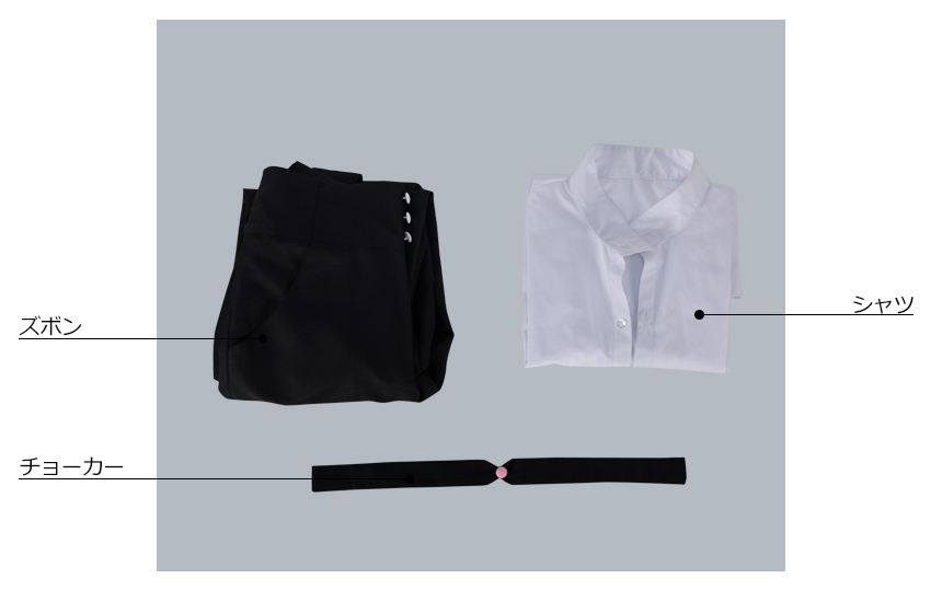 シャツ、ズボン、飾り物(チョーカー)