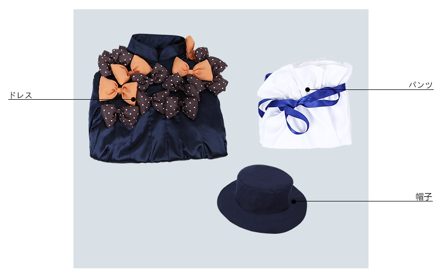 ドレス、パンツ、飾り物(帽子)