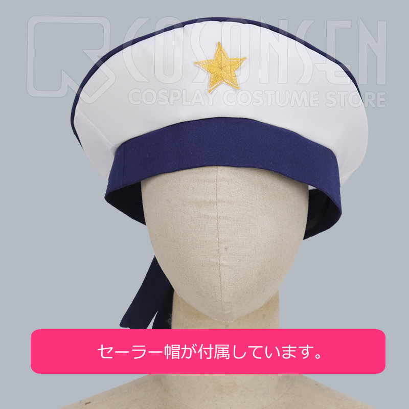スカーフ、セーラー帽、胸飾り、腰飾り、ベルトも付属しています。