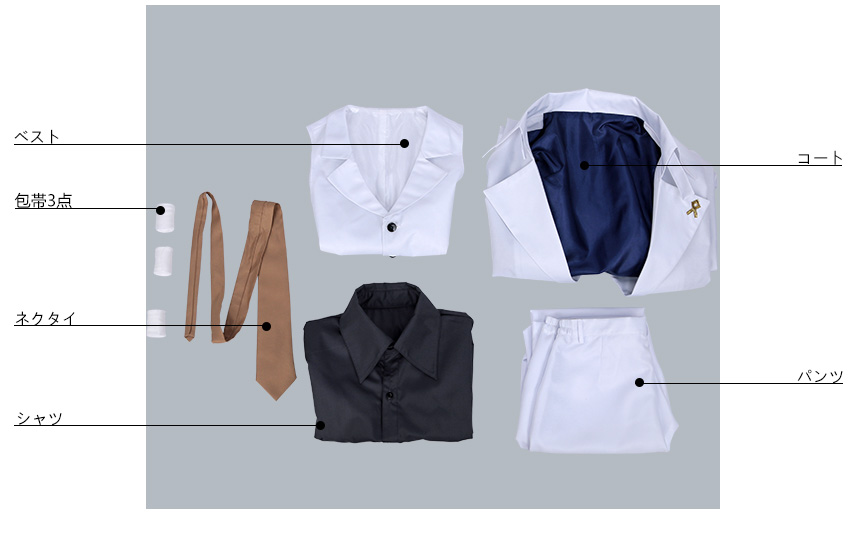 コート、ベスト、シャツ、パンツ、飾り物(ネクタイ、包帯3点)