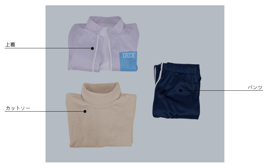 ジャージ生地で製作されました。胸ポケットに"DECE"がプリントされています。メッシュの裏地が付いています。