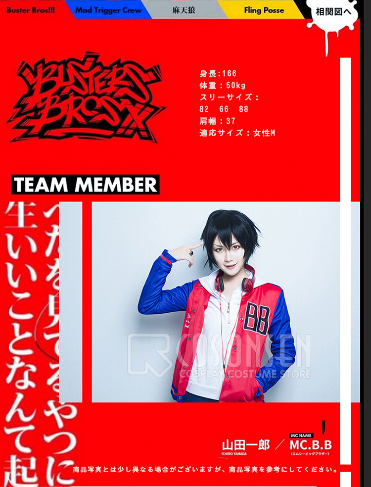 ■ジャンル:ヒプノシスマイク Buster Bros!!! MC.B.B 山田一郎 コスプレ衣装