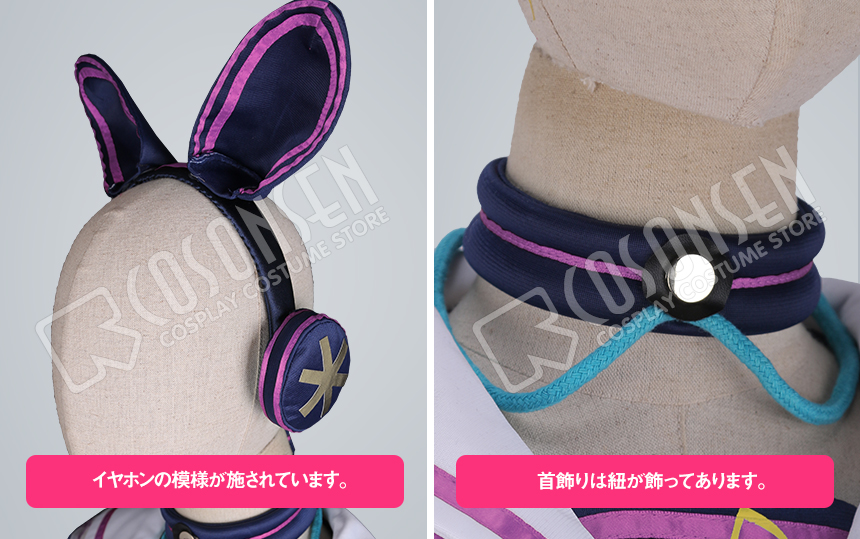 カチューシャ、首飾り、スカーフ、紐、手袋2点、腕飾り2点、腰布2点も付属しています。