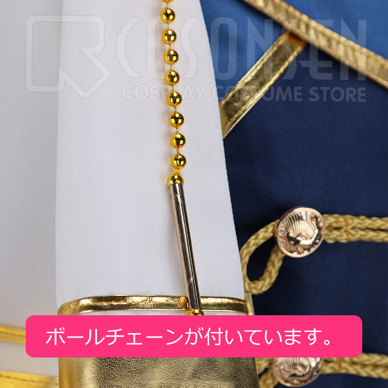 ボールチェーン、肩飾り2点、肩ベルト、ベルト、手袋も付属しています。