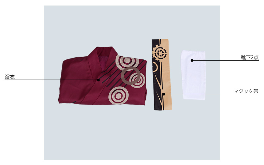 浴衣、飾り物(マジック帯、靴下2点)