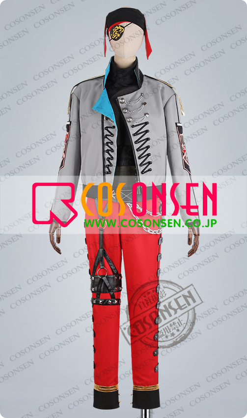 ジャケット、インナー、パンツ、飾り物(頭飾り、眼帯、ウエストベルト、ベルト、ウォレットチェーン)