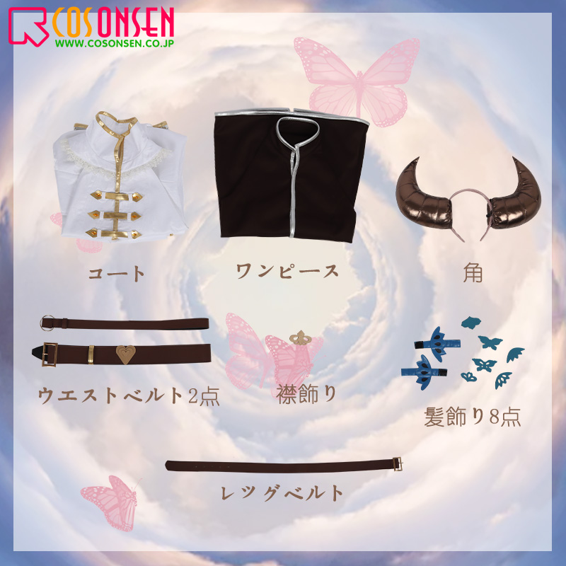 コート、ワンピース、飾り物(角、髪飾り8点、襟飾り、ウエストベルト2点、レッグベルト)