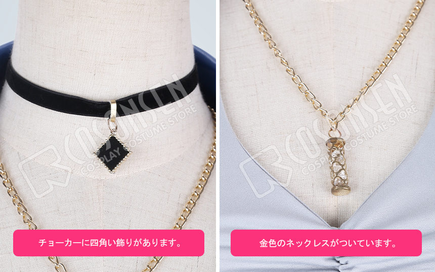 チョーカー、ネックレス、ブレスレット3点も付属しています。