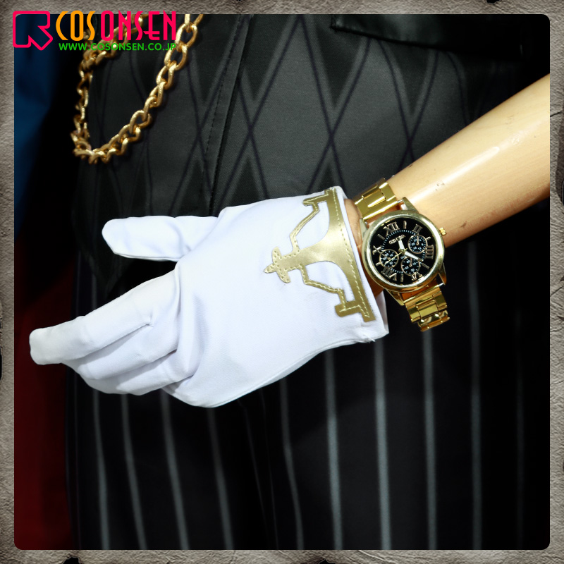 ネクタイ、手袋2点、ベルト、腕時計、懐中時計も付属しています。